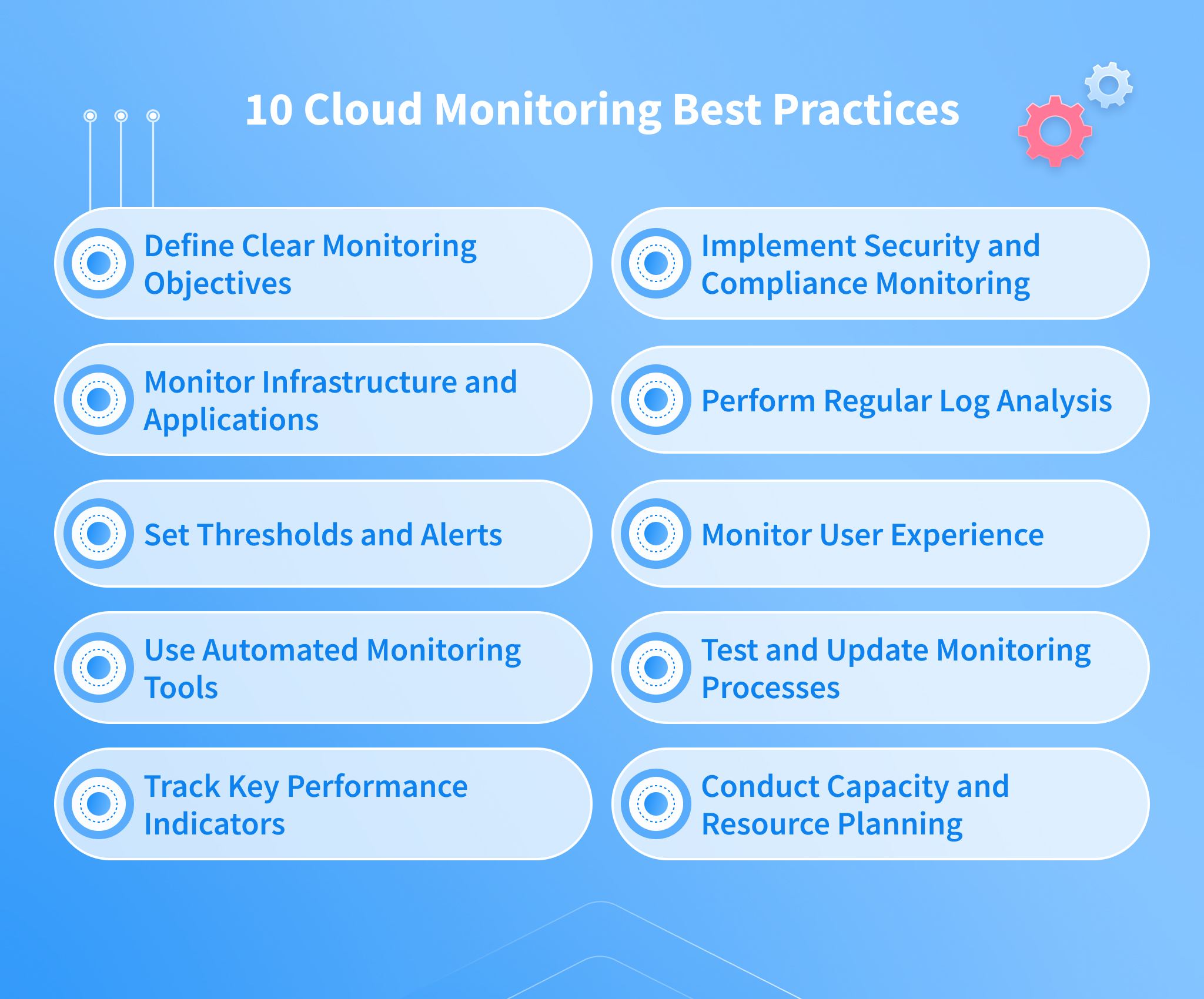 Regular testing and updates ensure that cloud monitoring stays effective as environments change. This helps businesses adapt quickly to growth and evolving technical needs.Example: A SaaS startup revises its monitoring protocols quarterly to align with new application features and customer usage patterns.