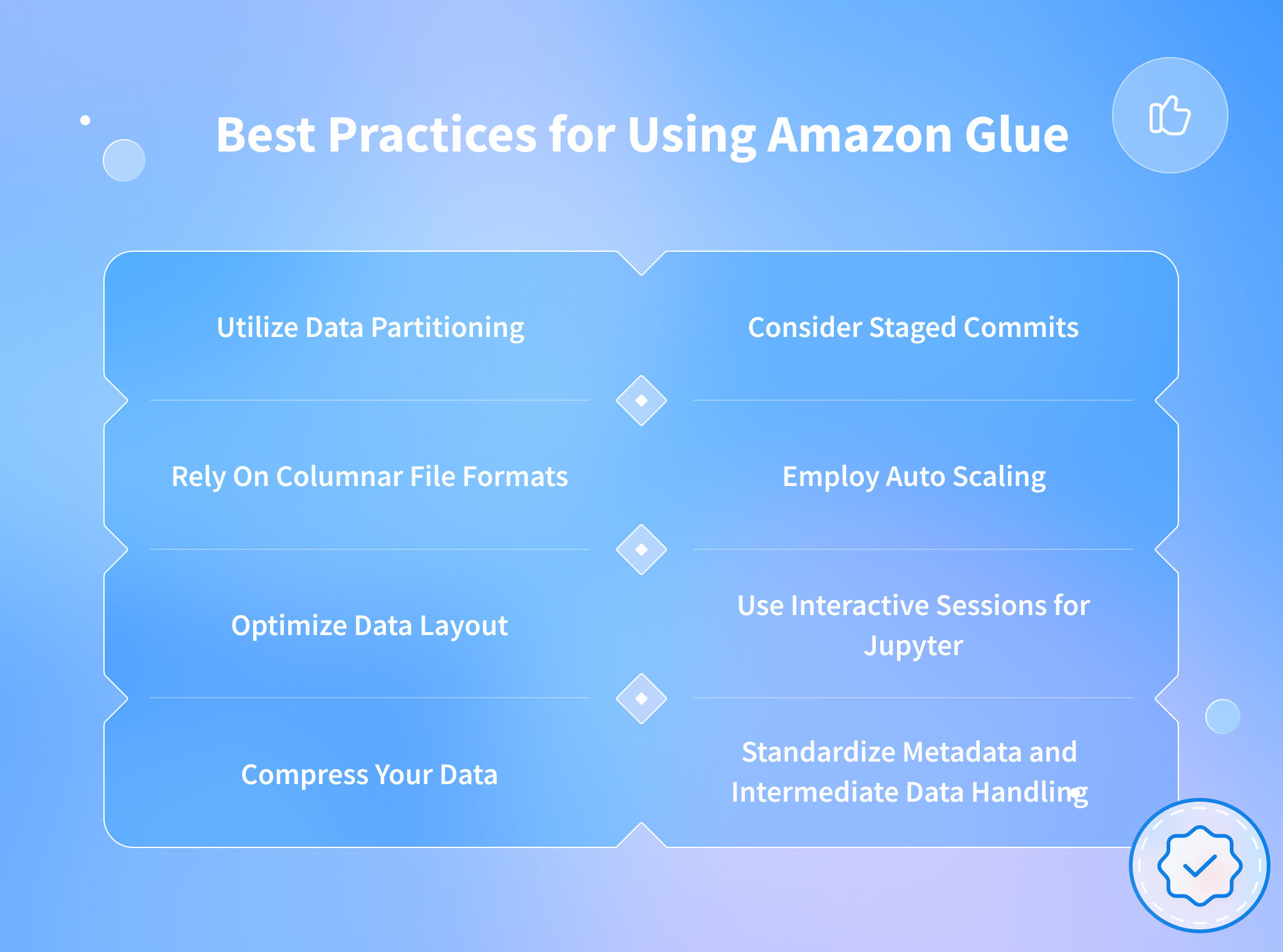 Using Amazon Glue can be quite a learning curve. To ensure you’re employing strategies to extract the most value from the service, rely on the following best practices.
