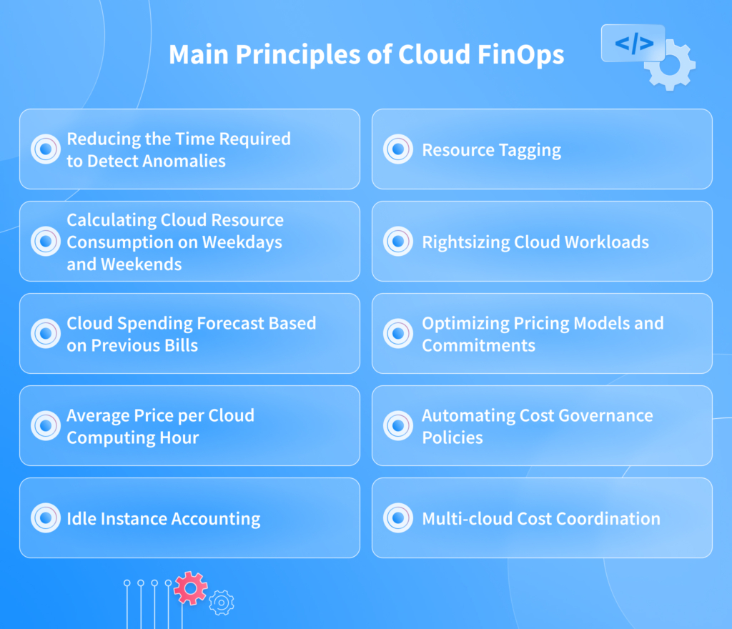 Modern companies are increasingly adopting structured cost management strategies built around the FinOps life cycle and principles, helping them gain financial control without slowing innovation. When implemented correctly, FinOps enables organizations to forecast spending, optimize cloud resource utilization, and make data-driven investment decisions. In this article, you’ll learn about the main principles of cloud FinOps, how to prepare your company for its implementation, the main FinOps challenges, and business benefits.