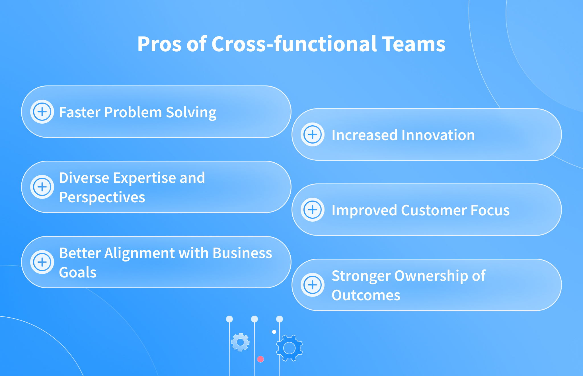 Because cross-functional team roles and responsibilities are aligned around shared outcomes, teams focus on measurable impact rather than isolated tasks. Unlike traditional teams that optimize for departmental KPIs, cross-functional teams connect their work directly to revenue, retention, or efficiency targets.