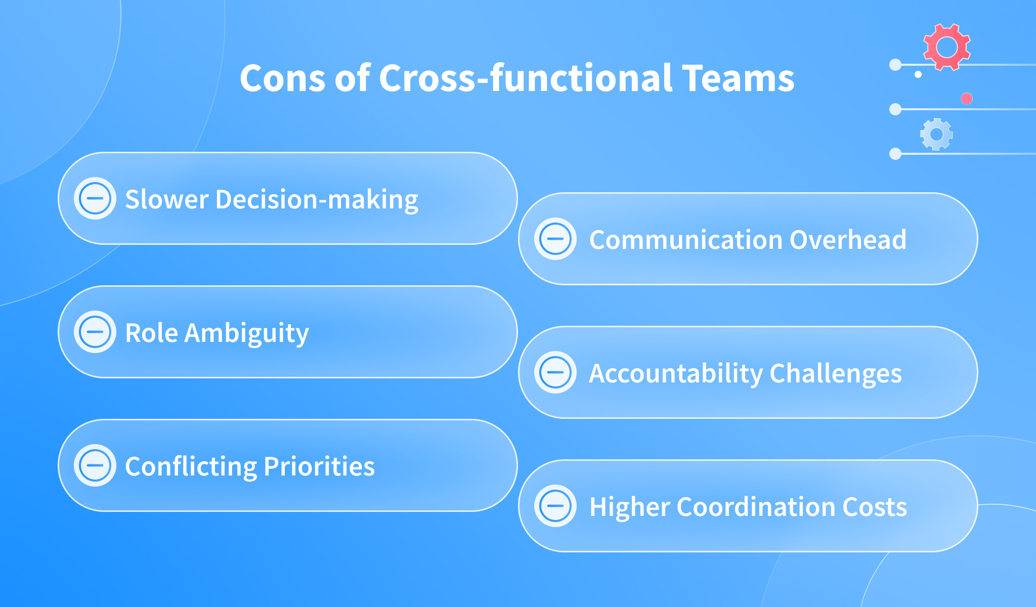 Cross-functional team collaboration requires structured communication. More alignment meetings, documentation, and coordination can increase time spent on collaboration rather than execution.
