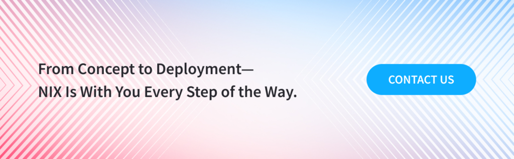 At NIX, we apply these SDLC best practices from our extensive real-world experience, ensuring that every project is managed with precision and aligned with your strategic objectives. Whether you need hands-on development, process consulting, or expert guidance, our team is ready to ensure a smooth, efficient, and secure SDLC for your business. Contact us to start a project or request consulting services, and let us help you transform your ideas into high-quality, market-ready software.