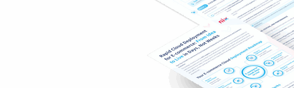 This adaptable framework allows us to integrate seamlessly into your e‑commerce project. Whether building from scratch, upgrading, or migrating, NIX’s expert e‑commerce developers are your trusted partners for success.