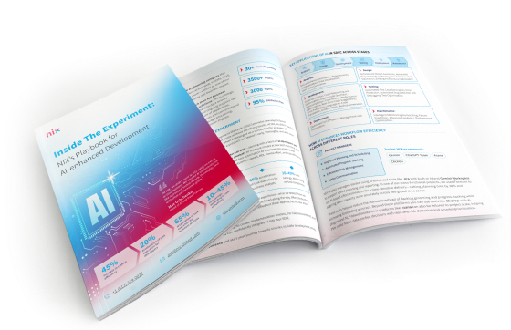 Skip the trial and error—download our free playbook based on NIX’s real-world AI development experiment. Discover what truly works to boost productivity, streamline workflows, and reduce risk.